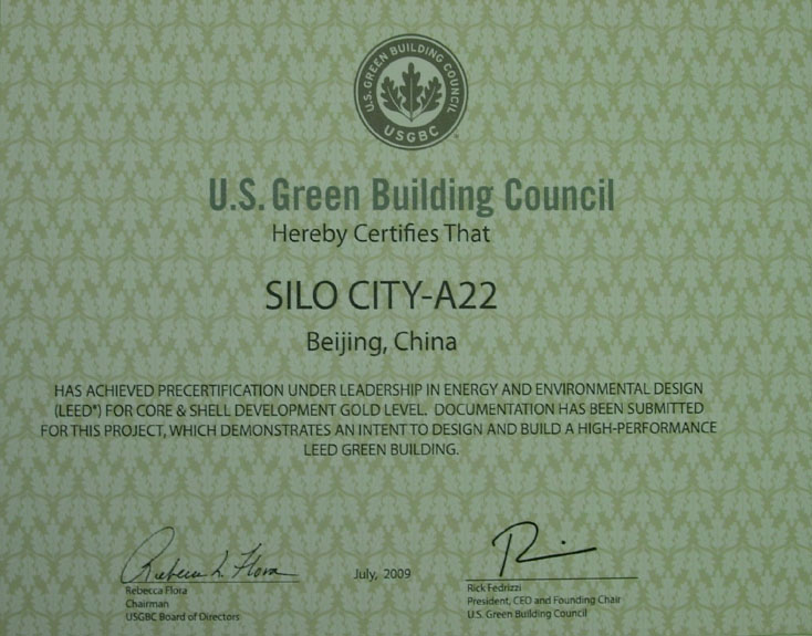北京賽洛城A22號樓榮獲美國LEED-CS單體建筑預認證金級