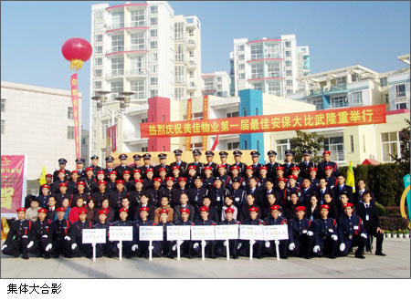 “最佳安保”是集團江鳴總裁為美佳物業(yè)確定的三項核心競爭力之一。從2005年初,美佳物業(yè)總公司就完成了“最佳安保”模式從硬件到實操、理論、體能訓(xùn)練等一系列軟件標準的制訂,并在所有區(qū)域公司開展了“最佳安保”的輪回培訓(xùn),為美佳“最佳安保”模式的推廣奠定了堅實的基礎(chǔ)。