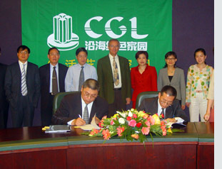 2006年3月29日上午,在集團偉柏花園大會議室,沿海地產投資(中國)有限公司執行總裁吳有富先生與施耐德電氣(中國)投資有限公司亞太區業務發展總監吳波先生分別代表各自企業簽署了《低壓配電產品戰略合作框架協議》。集團采購管理部總經理楊炯軒女士、副總經理徐立群先生,集團工程管理部總經理張小強先生,及施耐德電氣(中國)投資有限公司亞太區業務發展副總裁等出席了簽字儀式。雙方就成套低壓配電產品(使用進口品牌元器件)的戰略采購以及雙方公司層面的交流與共同發展等長期合作事宜達成了一致意見。