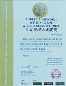 “蒙代爾·世界經(jīng)理人成就獎”是目前對經(jīng)濟、管理、商業(yè)領(lǐng)域的職業(yè)經(jīng)理人最高獎項,由權(quán)威的管理雜志《世界經(jīng)理人周刊》聯(lián)合《蒙代爾》雜志等20家主流財經(jīng)媒體聯(lián)合評選,提名專家和評選委員來自國際知名經(jīng)濟學家、管理學家、咨詢專家等。