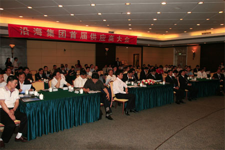 主題為“精誠合作,共創卓越”的沿海集團首屆供應商大會于2007年5月13日在北京帝景豪庭大酒店成功召開。大會規模盛大,內容豐富,包括中鐵二局股份有限公司、中國建筑第七局(集團)公司、深圳中海建設監理有限公司、施耐德電氣(中國)投資有限公司、廣州日立電梯有限公司、科勒(中國)投資有限公司、拉法基屋面系統(中國)等25家國內外知名供應商參加了大會,與會嘉賓達到110多人。
