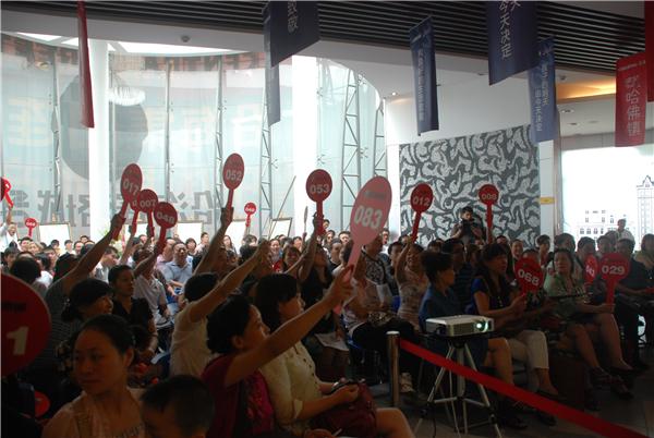 近期,國(guó)務(wù)院新一輪調(diào)控政策出臺(tái),住建部即將擬定新一輪二三線城市限購(gòu),非剛需消費(fèi)者心理更加篤定,持幣觀望態(tài)度有增無(wú)減,武漢各大樓盤價(jià)格戰(zhàn)硝煙彌漫。面對(duì)這樣的市場(chǎng)背景,8月7日,沿海集團(tuán)在武漢采取一種全新的銷售方式,在武漢以史無(wú)前例的現(xiàn)場(chǎng)拍賣模式。