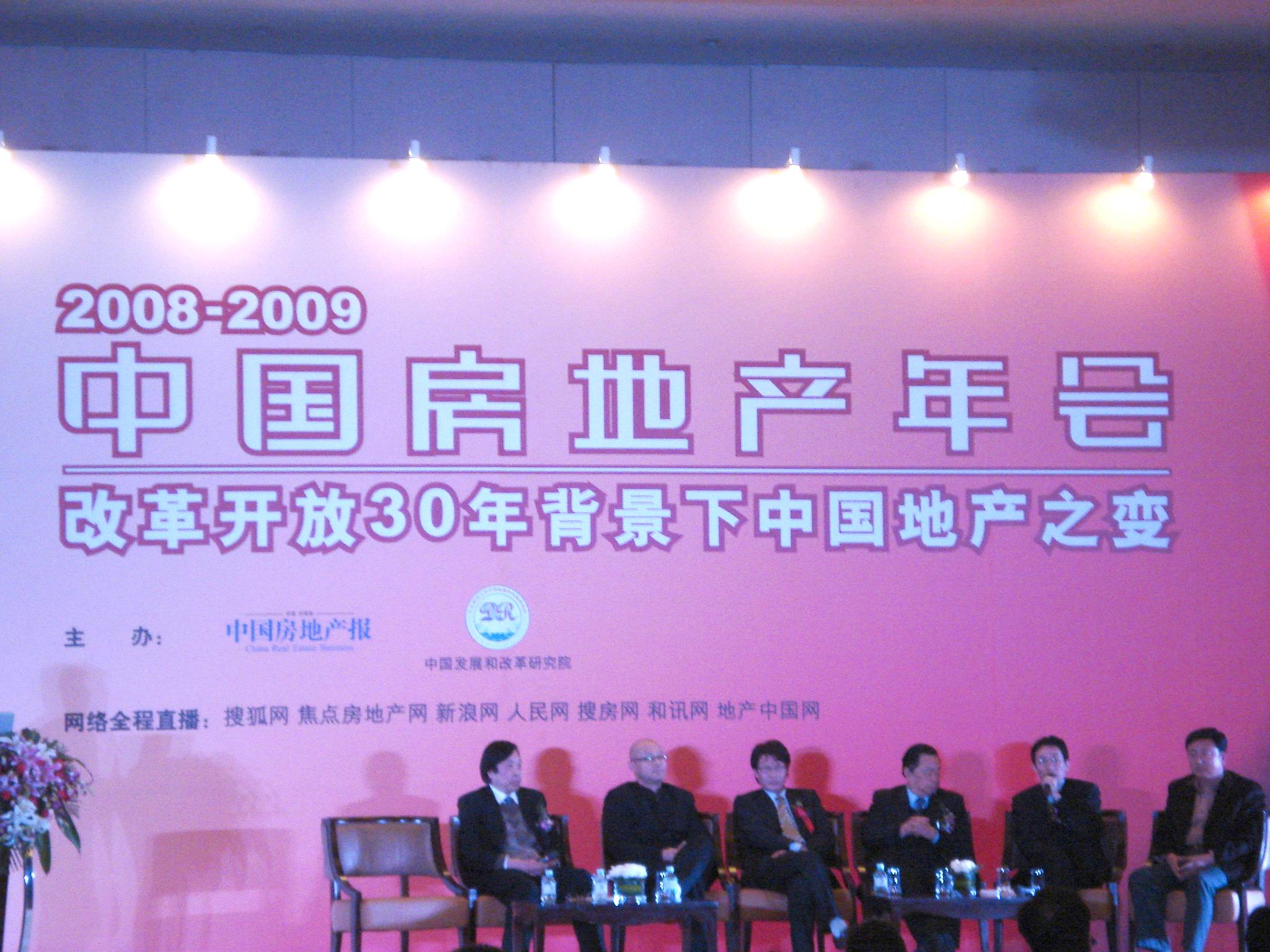 12月20日, “2008-2009中國房地產年會”在北京召開,這個被稱為“改革開放30年中國地產最權威盤點、2008全球金融危機及中國保增長政策出臺后最重要的地產年會”,由中國房地產報、中國發展和改革研究院等單位共同主辦。參與者包括全國人大原副委員長成思危先生、國資委研究中心主任王忠明、住房和城鄉建設部政策研究中心副主任秦虹、國務院發展研究中心社會發展研究部副局長岳頌東等重量級嘉賓。