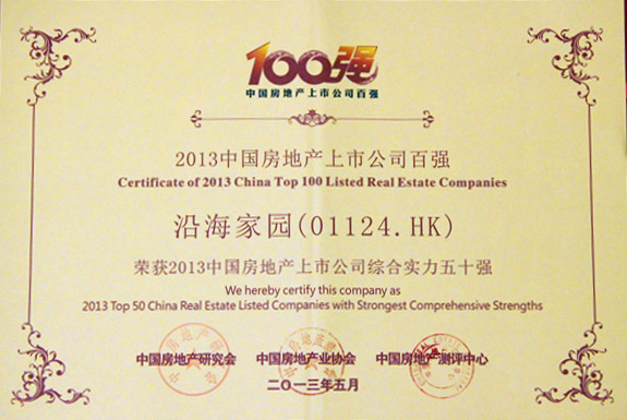 由中國房地產研究會、中國房地產業協會與中國房地產測評中心主辦的2013中國房地產上市公司測評成果發布會于5月23日在北京和香港同步盛大舉行。沿海綠色家園有限公司(香港聯交所代碼“01124.HK”,簡稱“沿海家園”)連續兩年入選“中國房地產上市公司綜合實力50強”,2013年名列第37位。