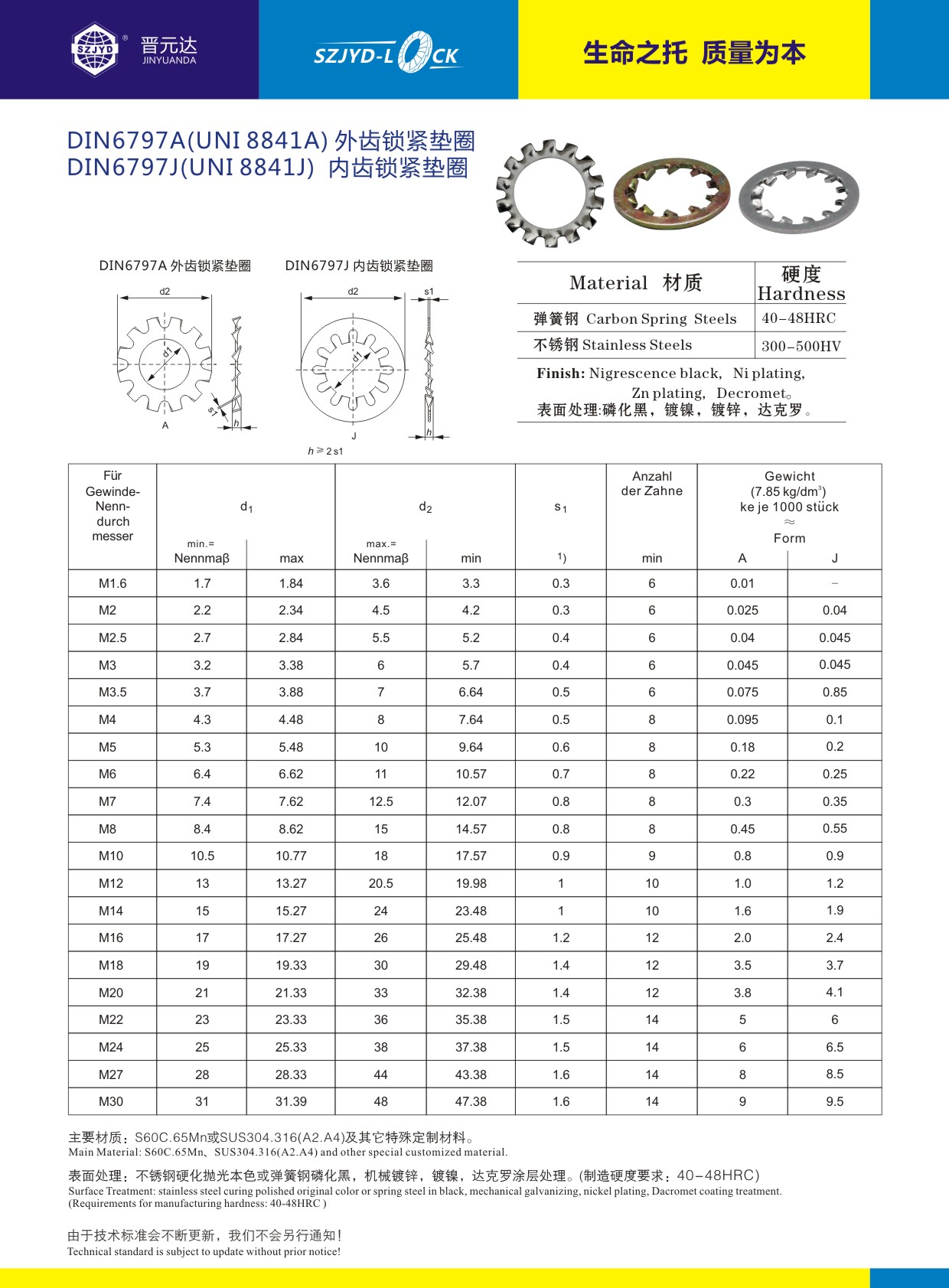 常用規(guī)格:M2-M30德標(biāo)型號(hào)都有現(xiàn)貨,除標(biāo)準(zhǔn)型號(hào)內(nèi)齒墊圈外還可根據(jù)客戶(hù)要求提供訂制尺寸。