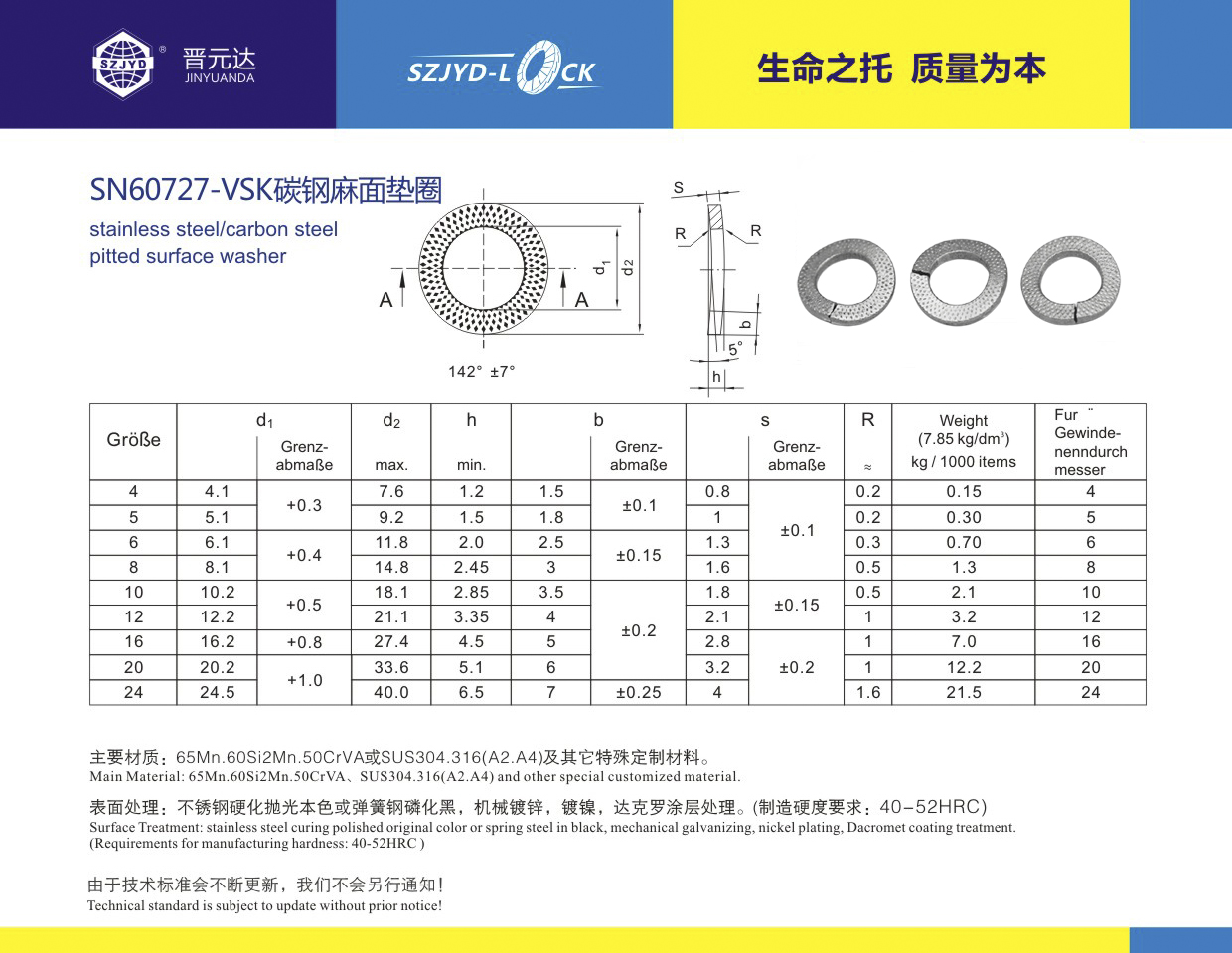 • 對應標準: SN (VSKD)60727-2 弧形彈簧墊圈