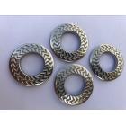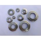 預緊力防松效果比碟形墊圈要好、在歐洲鐵路領域被量采用、表面齒紋增加了防松系數! 目前齒紋總設計有多種、根據墊圈接觸面尺寸不同齒紋也會變化!