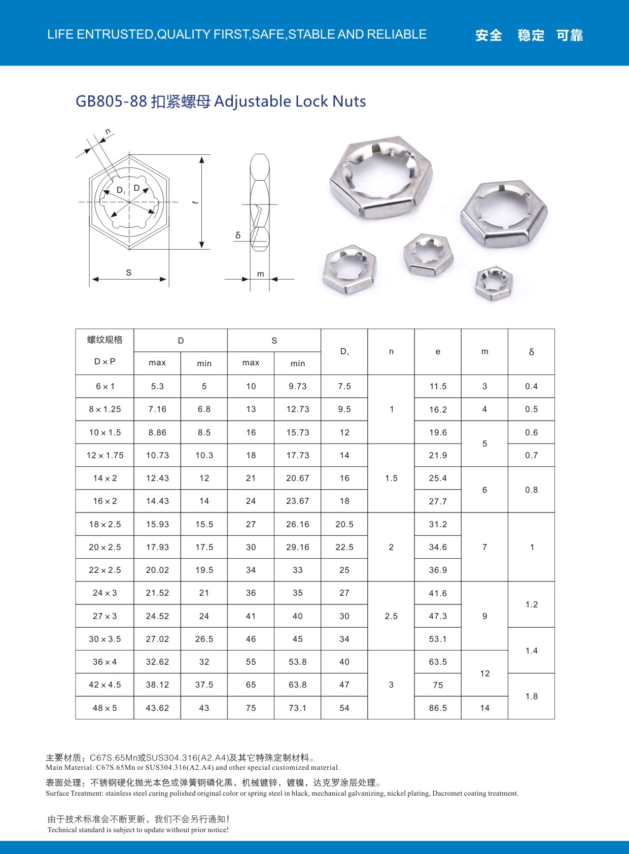 國標GB805扣緊螺母,65MN材質/硬化達克羅涂層處理!采用沖壓工藝,常用M6-M48型號都有現貨!JYD品牌扣緊螺母品質相對專業,功能及外觀與一般性市面扣緊螺母有明顯品質差別!歡迎索取樣品比較!