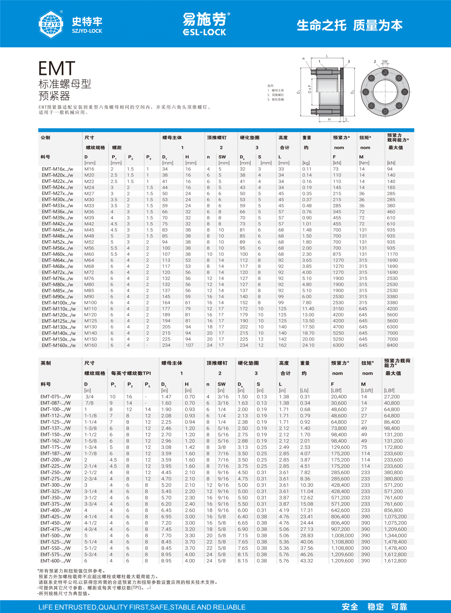 多頂推超級預緊器,可在很小空間安裝,使用簡單工具即可輕松預緊,節省安裝時間,ESL-LOCK品牌易施勞超級螺母具有完全的防松鎖緊功能,可多次拆卸重復使用。特別適用于M24規格以上大型螺栓鎖緊!一擰永固,永不松動!使用常規格為合金材料及特殊不銹鋼合金材料以及鎳基合金材料!更多了解歡迎咨詢我們.....