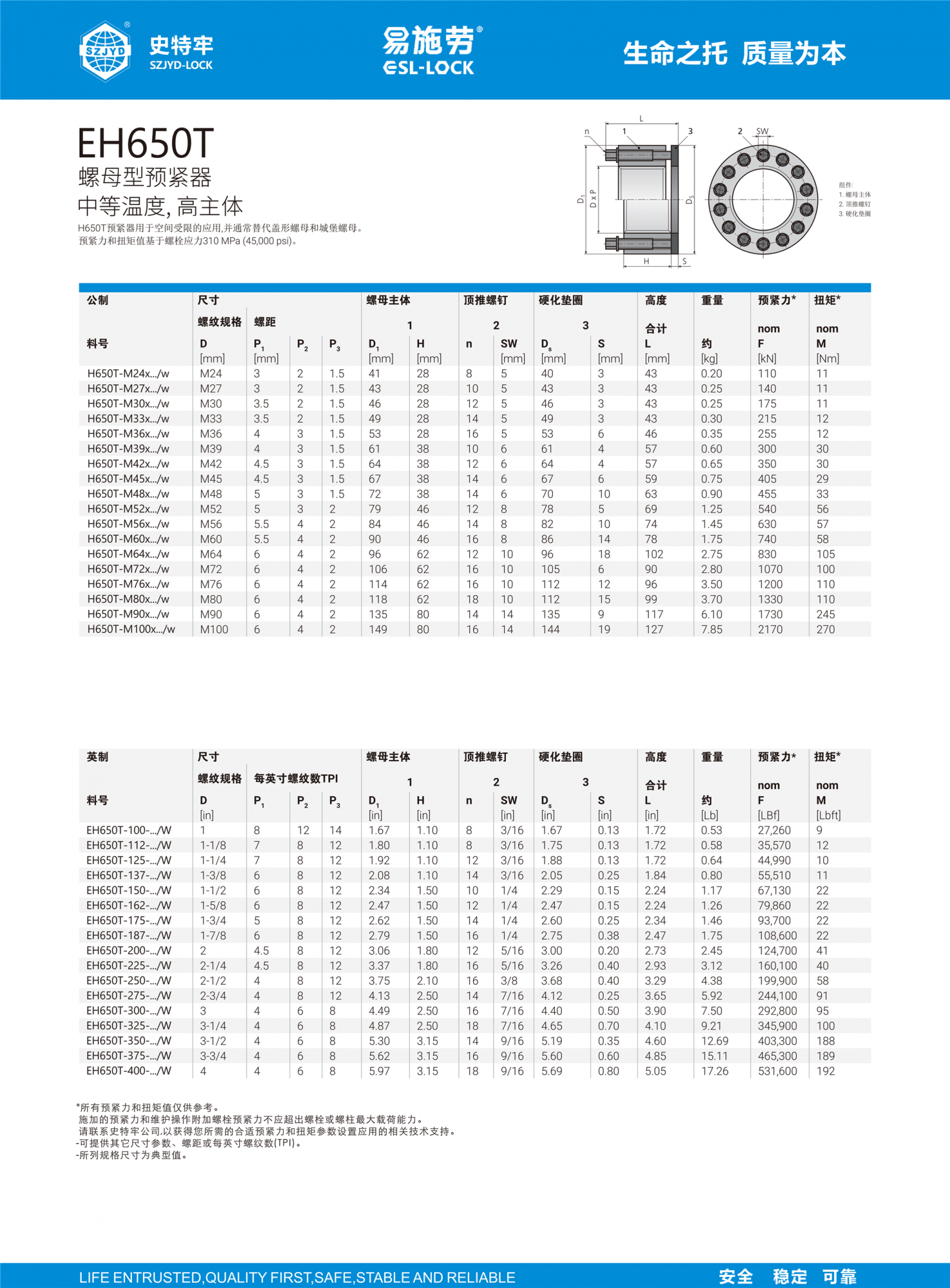 8.EH650T 螺母型預緊器中等溫度, 高主體