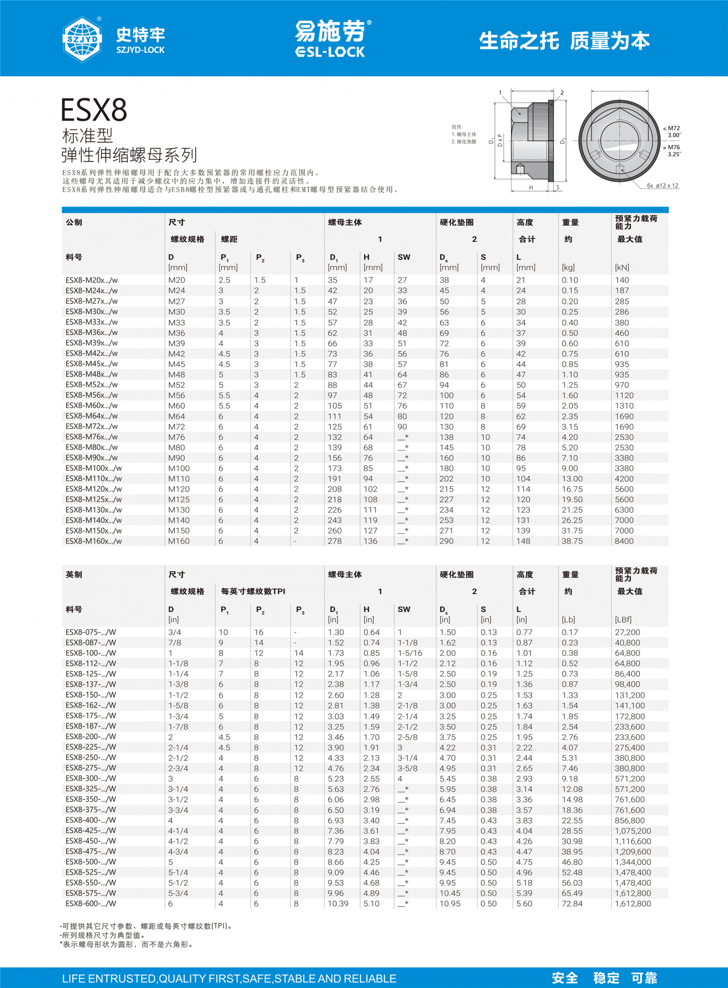 多頂推超級(jí)預(yù)緊器,可在很小空間安裝,使用簡(jiǎn)單工具即可輕松預(yù)緊,節(jié)省安裝時(shí)間,ESL-LOCK品牌易施勞超級(jí)螺母具有完全的防松鎖緊功能,可多次拆卸重復(fù)使用。特別適用于M24規(guī)格以上大型螺栓鎖緊!一擰永固,永不松動(dòng)!使用常規(guī)格為合金材料及特殊不銹鋼合金材料以及鎳基合金材料!更多了解歡迎咨詢我們.....